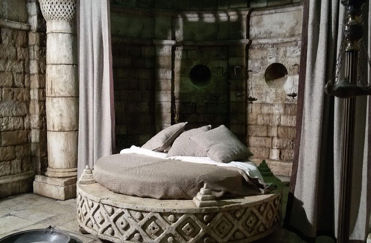 Per il set di Erode, Tecnostyle ha curato la ricostruzione di ogni singolo elemento con attenzione maniacale, senza lasciare nulla al caso. Dalle strutture architettoniche fino agli arredi, incluso il letto del sovrano, ogni dettaglio è stato realizzato combinando tecnica costruttiva, precisione esecutiva e artigianato artistico.