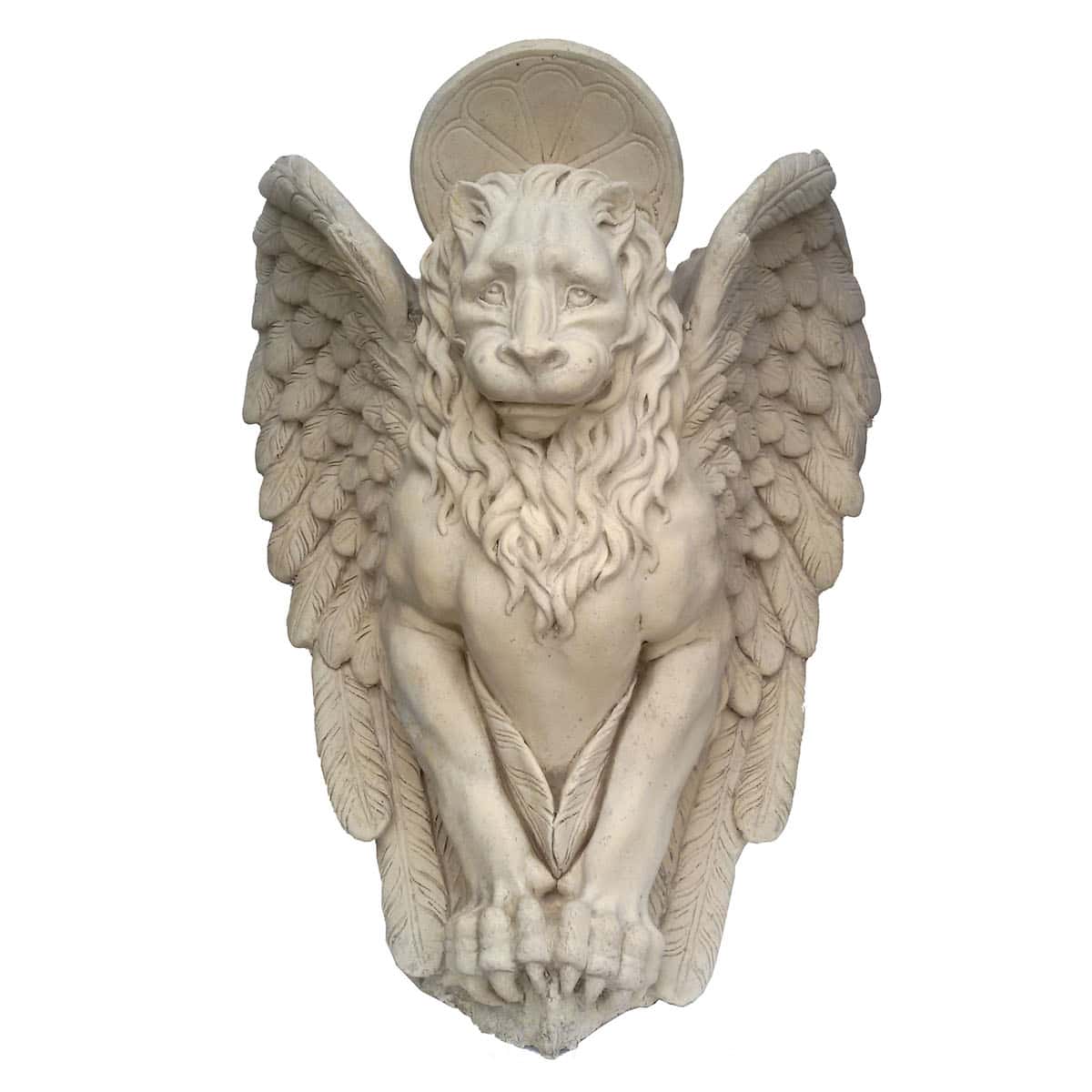 Leone con ali è una struttura in vetroresina che misura cm 60 x h 75.